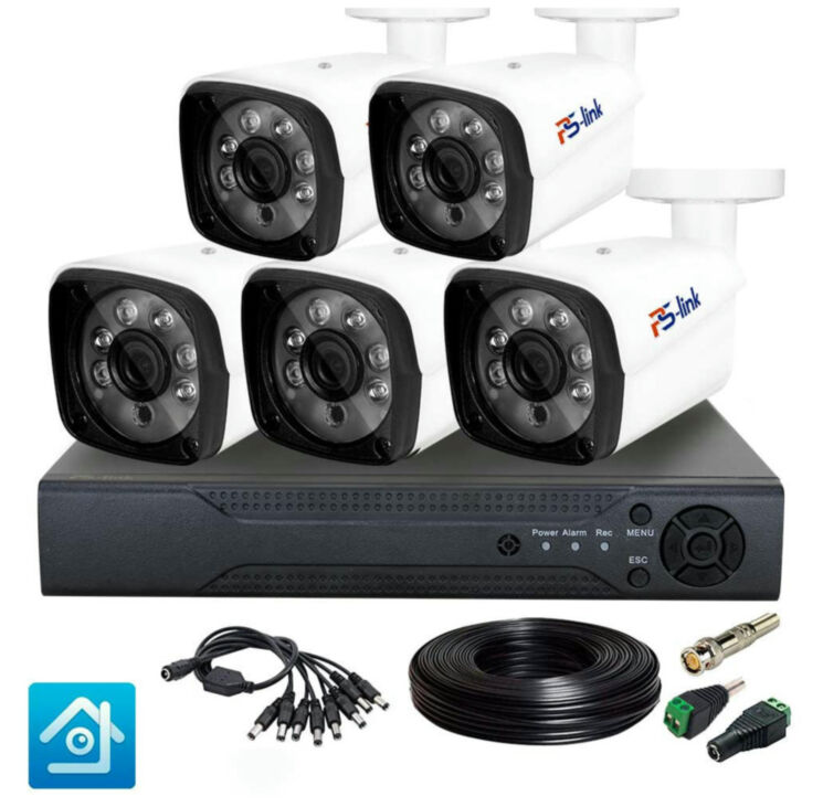 Ps-Link KIT-C205HD - это полноценный комплект видеонаблюдения состоящий из современного видеорегистратора на 4 канала, пяти цилиндрических камер видеонаблюдения для различных территорий (дач, гаражей, парадных, парковок и тд), бухт кабелей и блоков питания. Камеры с проверенным временем сенсором 2 мегапикселя формируют картинку из 1920x1080 пикселей. Угол обзора удобен для размещения камеры в углу и в кадре не будет широких полос в виде стен. Камера имеет отличную обзорность помещения и детализацию объектов на дистанции до 5-7 метров. Управлять системой видеонаблюдения с вашего компьютера или смартфона возможно через сеть интернет с помощью программы CMS и облачного сервиса XMeye. Обязательным условием удаленного подключения является подключение видеорегистратора к интернет-роутеру, а также знание пользователем ID номера регистратора и пароль от него.